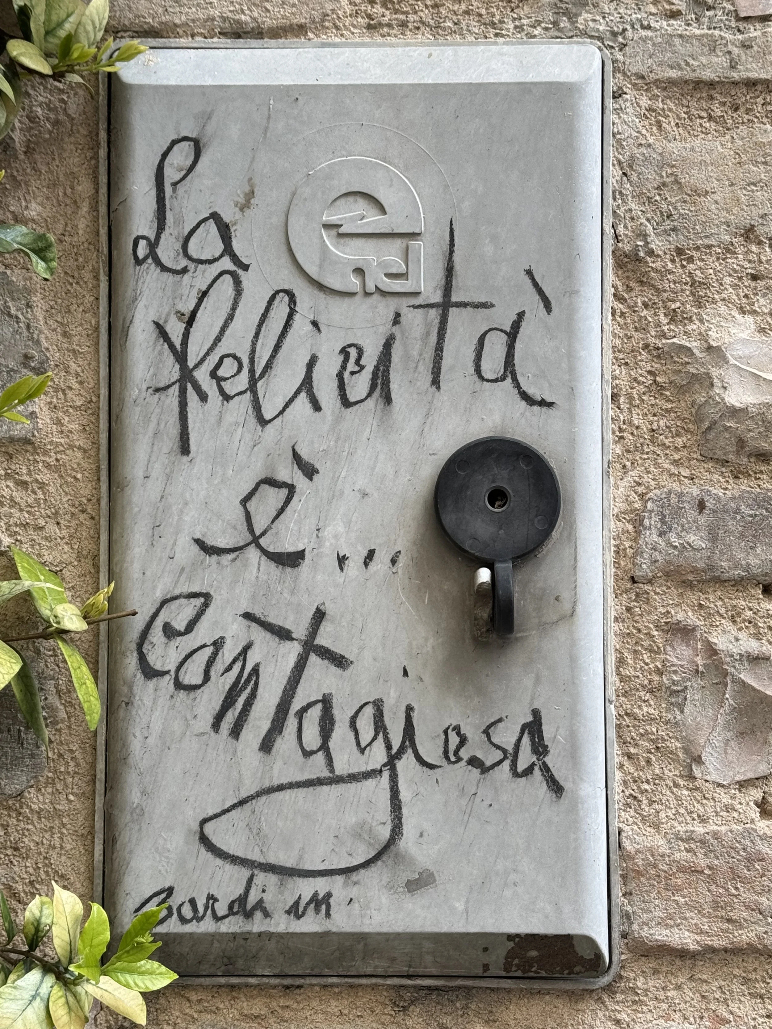 Street art in Spello proclaims that happiness is contagious. I agree!