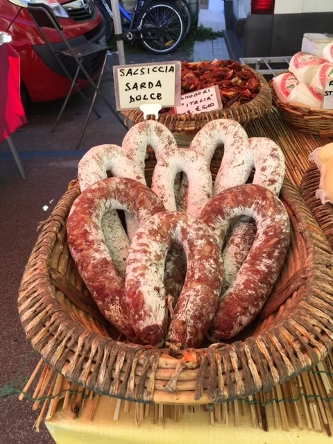 Many markets take place weekly, while others are special markets associated with festivals or celebrations. One such market takes place throughout the month of September in the Borgo Giannotti neighborhood of Lucca - it's part of the month-long celebration known as the Settembre Lucchese. This late summer/early fall market is especially lively and full of seasonal specialties - garlic braids, peppers, porcini mushrooms, chestnuts.