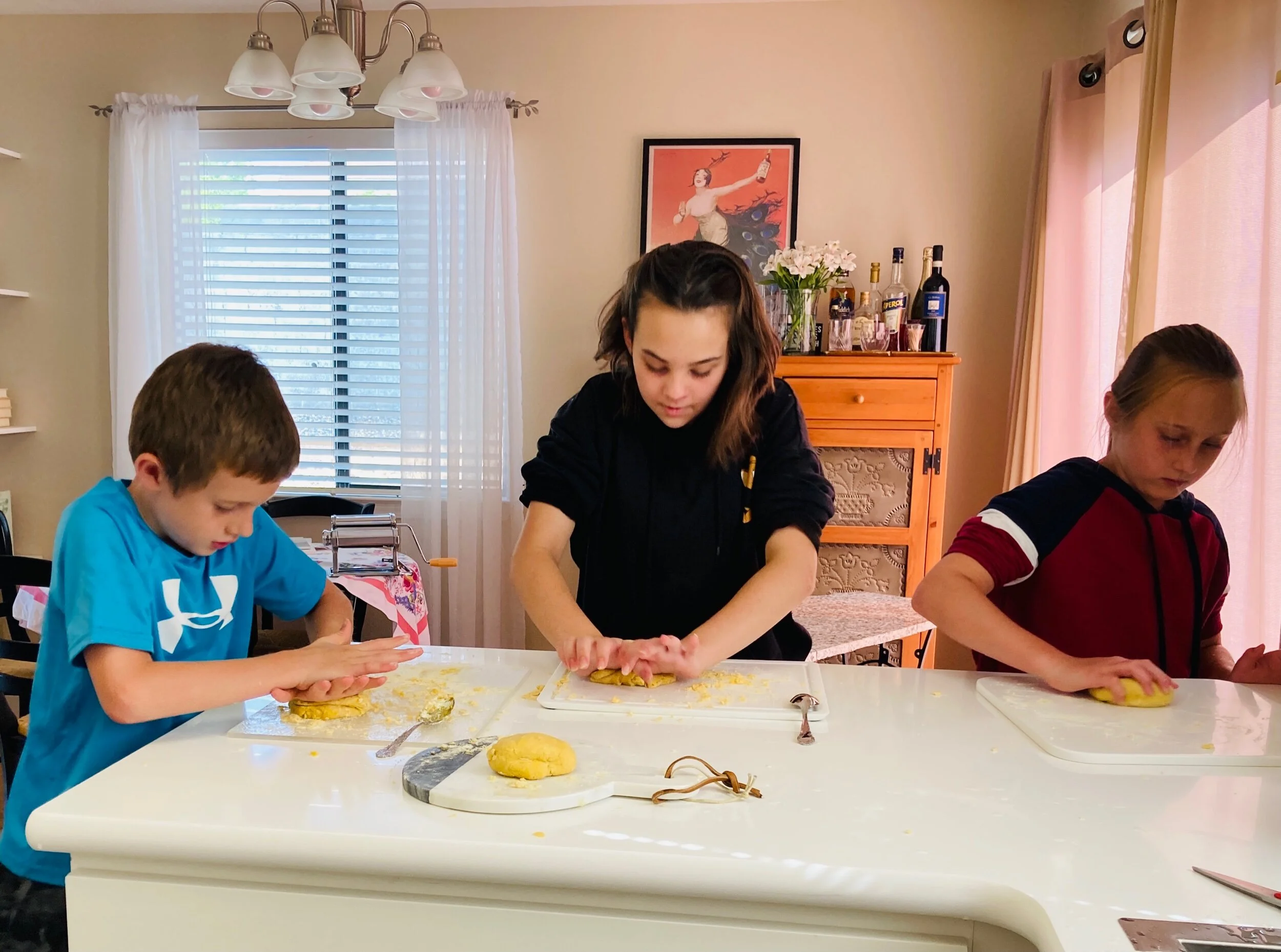 When you’re a grandmother who lives in Italy, and who visits your grandkids over the summer, you definitely need a plan to spend time doing some special activities together. It’s even better if the activities have an Italian theme. And since everyone in my family loves pasta, making pasta fatto a mano (handmade) together can be the perfect project. Inspired by the fun possibilities, I recently gathered my 3 youngest grandkids, ages 9, 10, and 12, for a morning of pasta making.