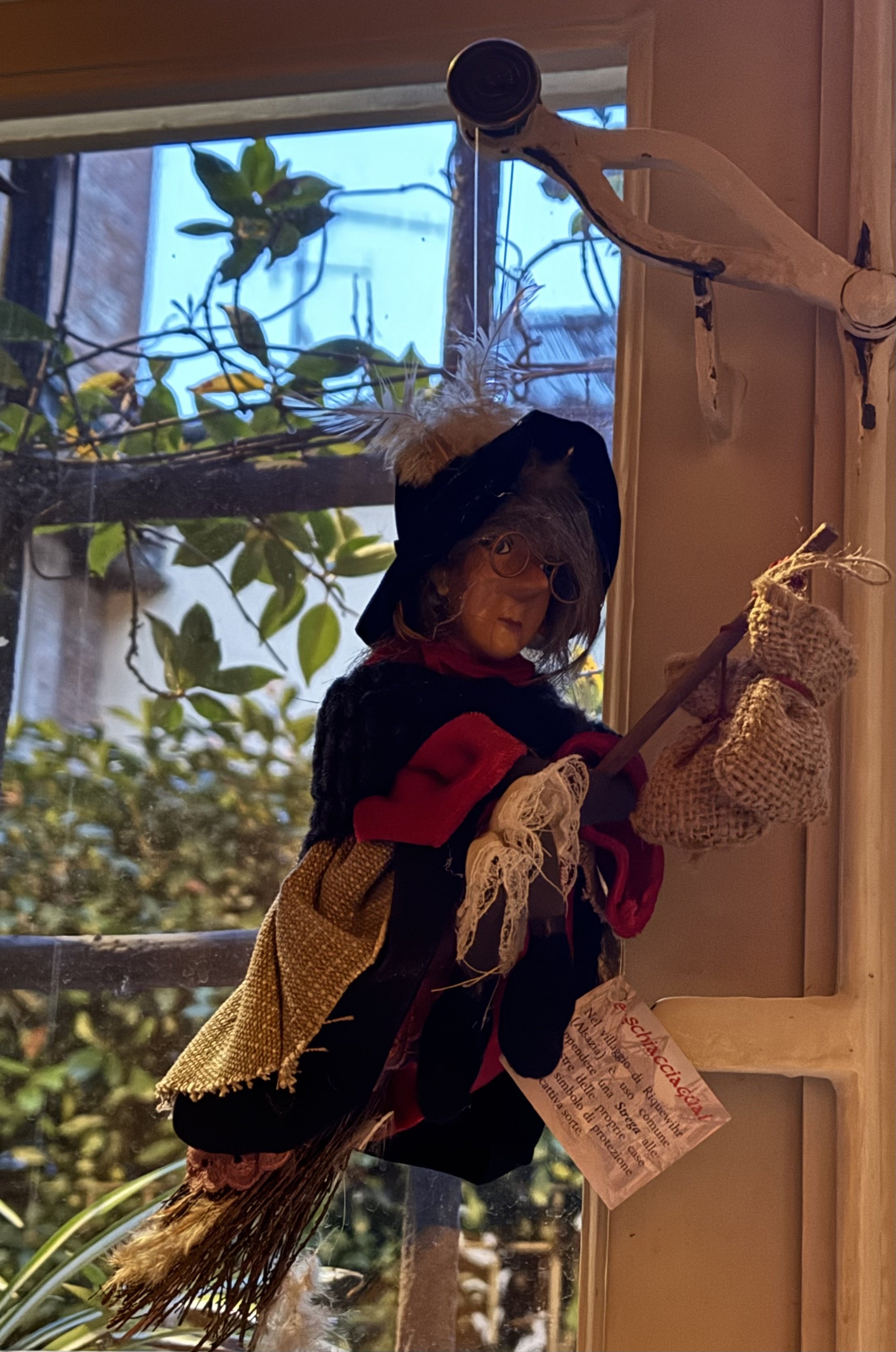 It all comes to an end on January 5th and 6th with the celebration of La Befana, the Christmas witch. On the evening of the 5th, Befana (perhaps several of them) will wander the historic center of Lucca. On the 6th, Befana arrives for the children in Piazza San Francesco. Descending from a roof top (with the help of a crane and the fire department), she brings stockings full of candy to the children. It is always fun to watch her arrival, surrounded by some very excited children. My own Befana keeps watch in my apartment throughout the season.