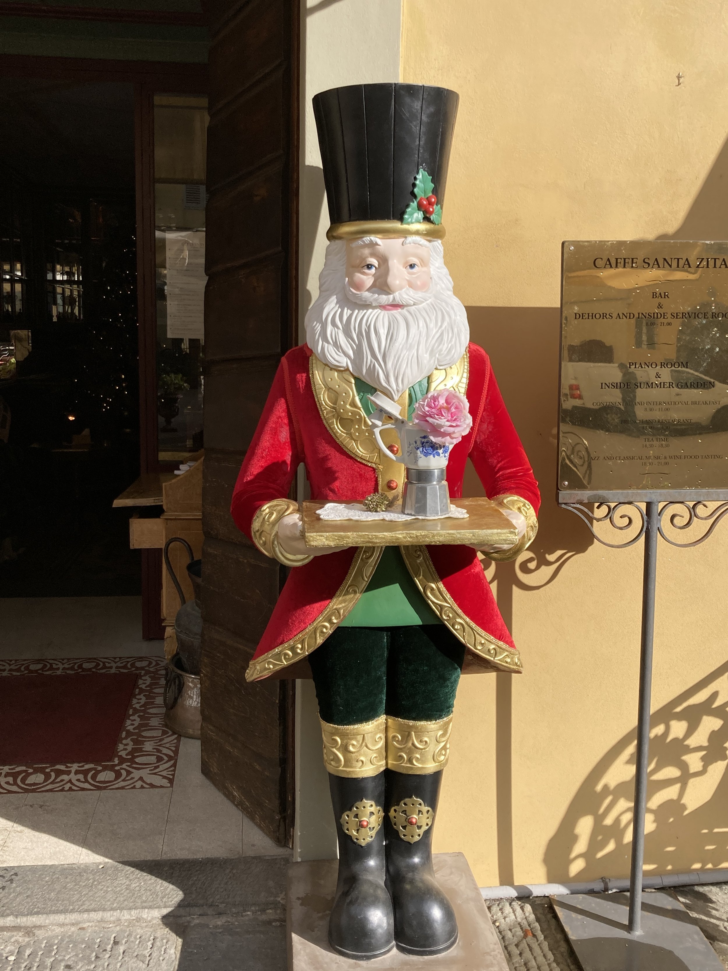 This Babbo Natale, much like Santa Claus, greets people as the enter the Caffè Santa Zita in Lucca