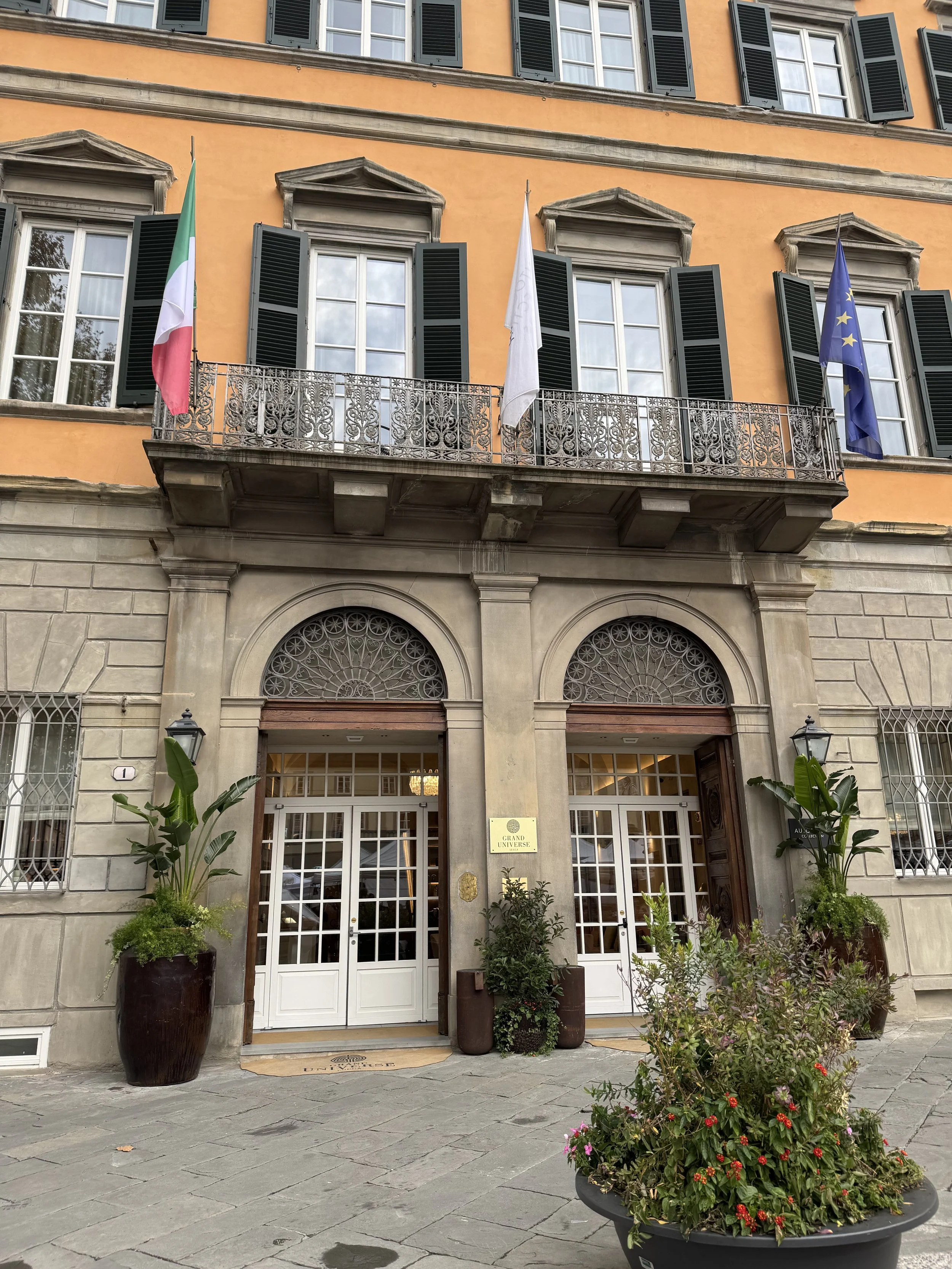 Lucca is a small town. Unlike Florence or Rome it does not have a lot of high-end, super fancy hotels. There is however the Grand Universe, a Marriott branded hotel which was remodeled a few years ago from a classic though dated local hotel to a modern, upscale destination spot. The roof top Champagne bar has amazing views and drink prices that may make you think you are in Rome. It is a treat, but not my usual hangout.