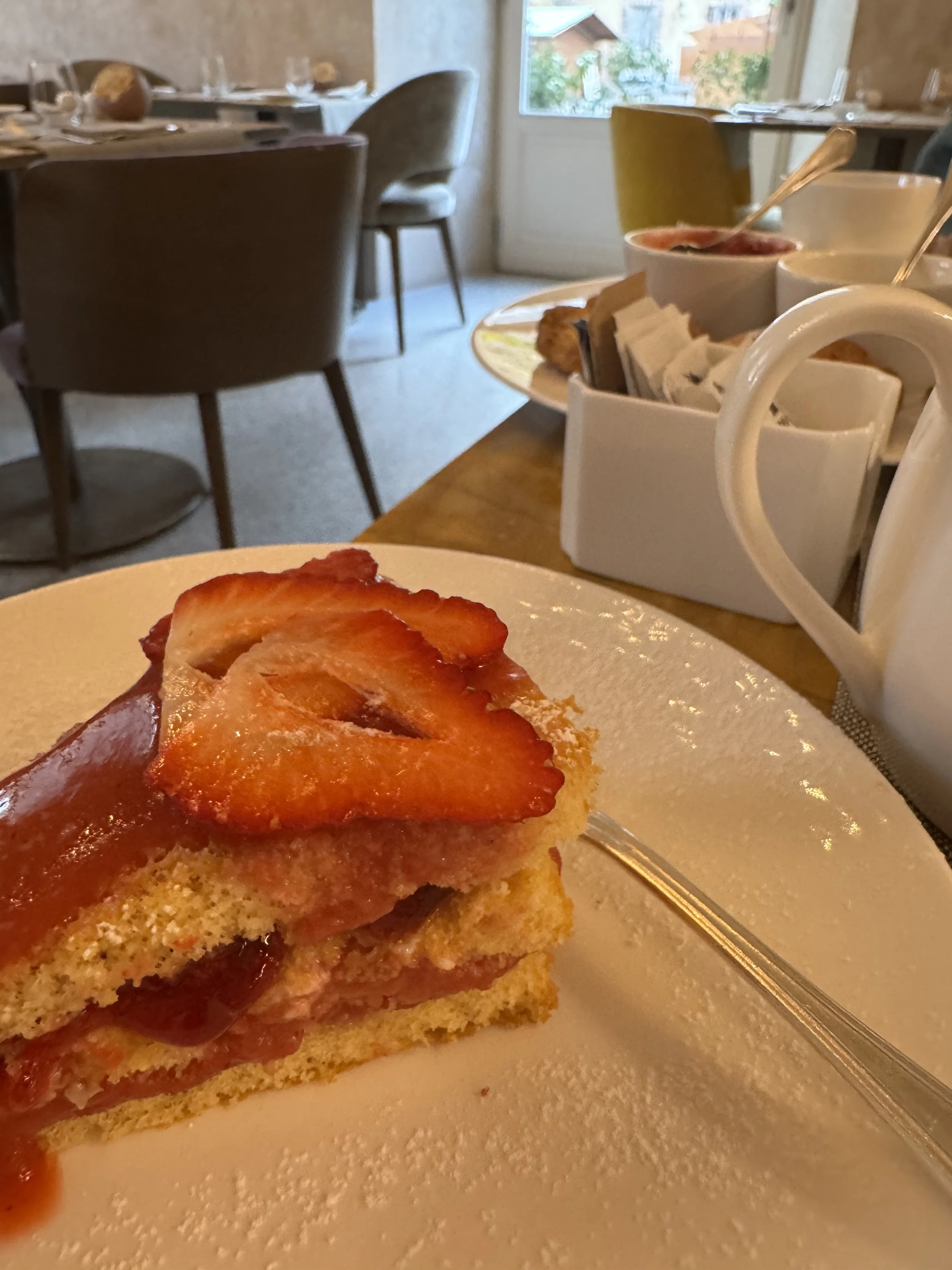 Scones are a must a team so of course there were scones. They were served with cream and a house-made strawberry jam. Wonderful!