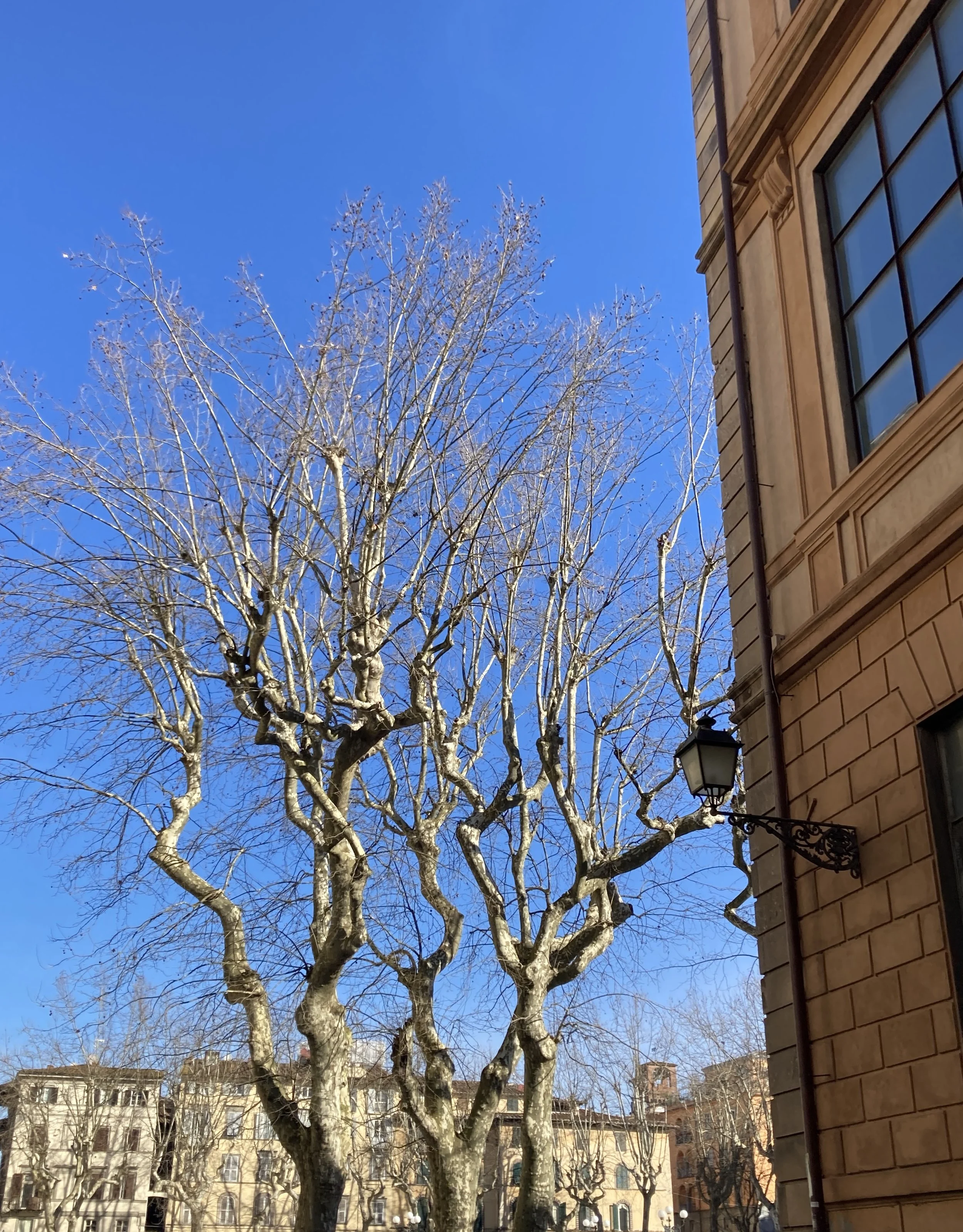 Is there any color more beautiful than the blue of a Tuscan sky? Even the bare trees look gorgeous on a February day against a cloudless blue sky in Lucca.