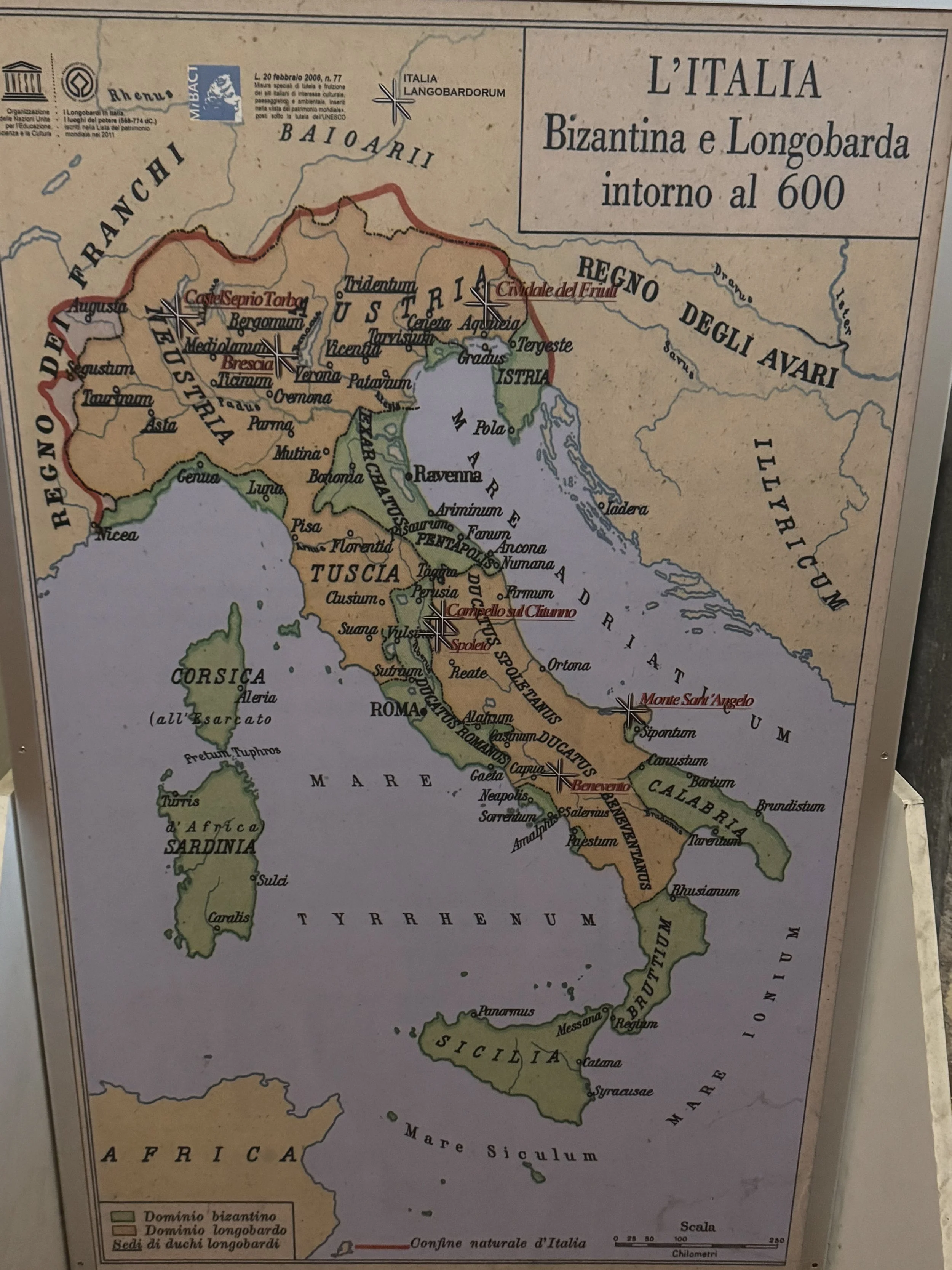 Much of the Cividale feels medieval but there are traces of earlier civilations too. The most intriguing part of Cividale’s history involves the Longobards. A bit of a history lesson is required here. After the Roman empire fell in the 5th Century AD, this part of Italy was ruled by the Byzantines until it was conquered by the Longobards. The Longobards had slowly moved from the north into Germany, Austria, Hungary, and Slovenia. In the last half of the 6th century they arrived in what is now northern Italy. Cividale del Friuli was the first Longobard Duchy. Eventually most of Italy, 35 Duchys in all, were part of Longobardo Italy.